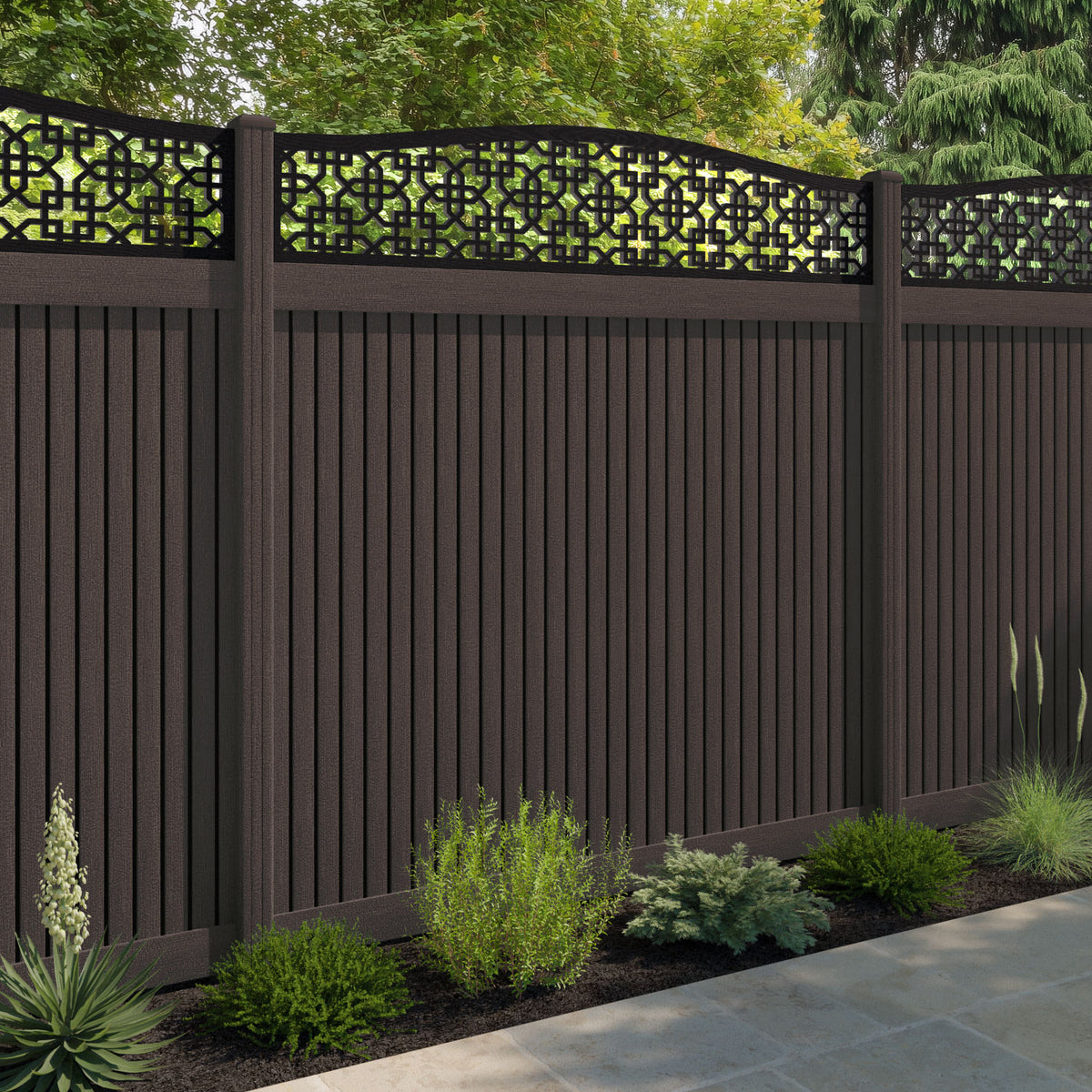 Virtis Zaria Curved Top Fence Panel Mid Brown - with our composite posts