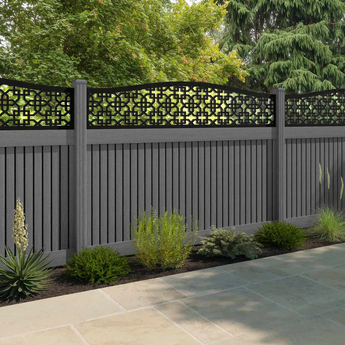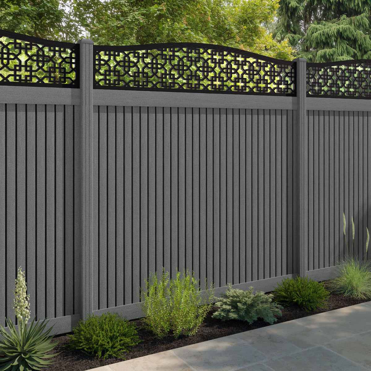 Virtis Zaria Curved Top Fence Panel Mid Grey - with our composite posts