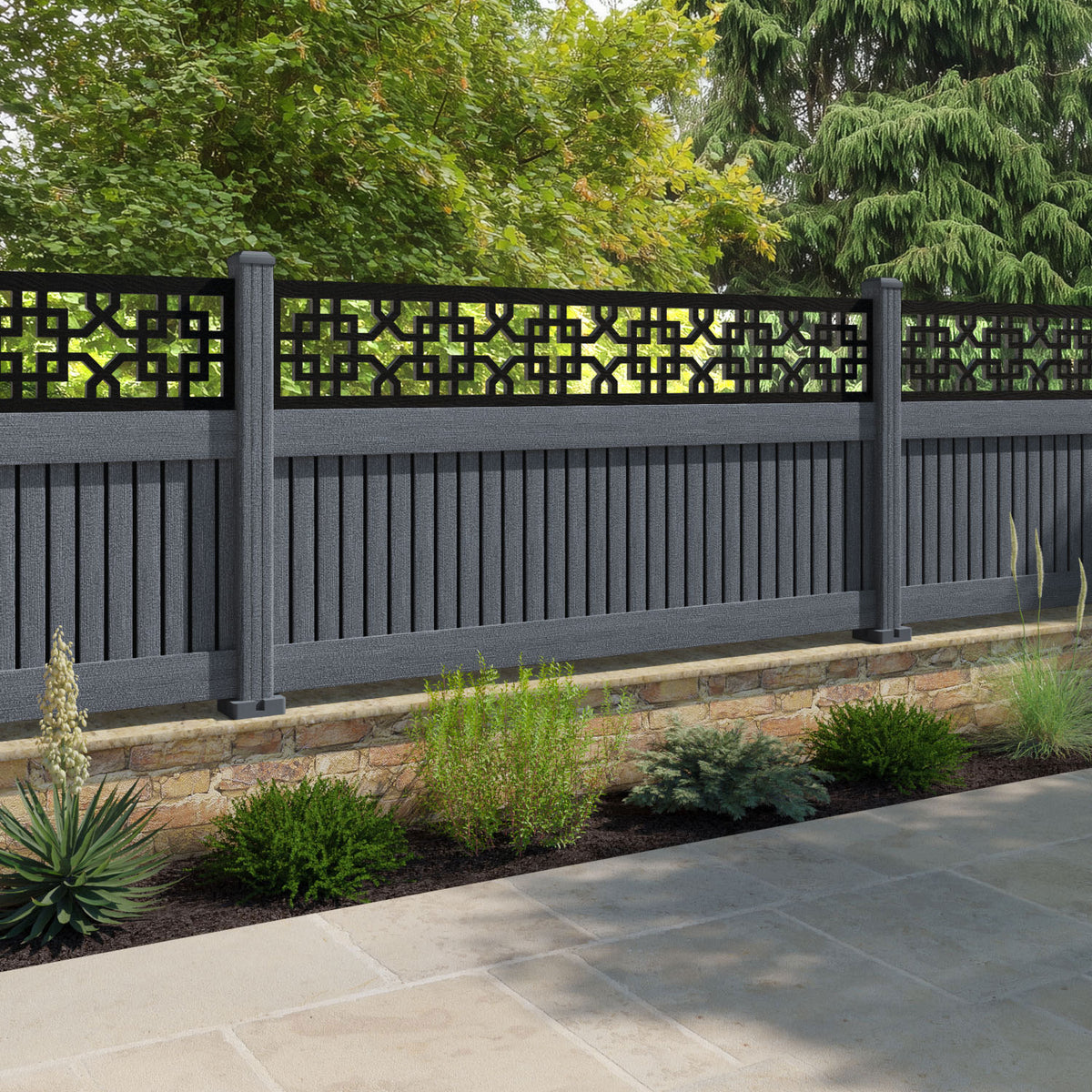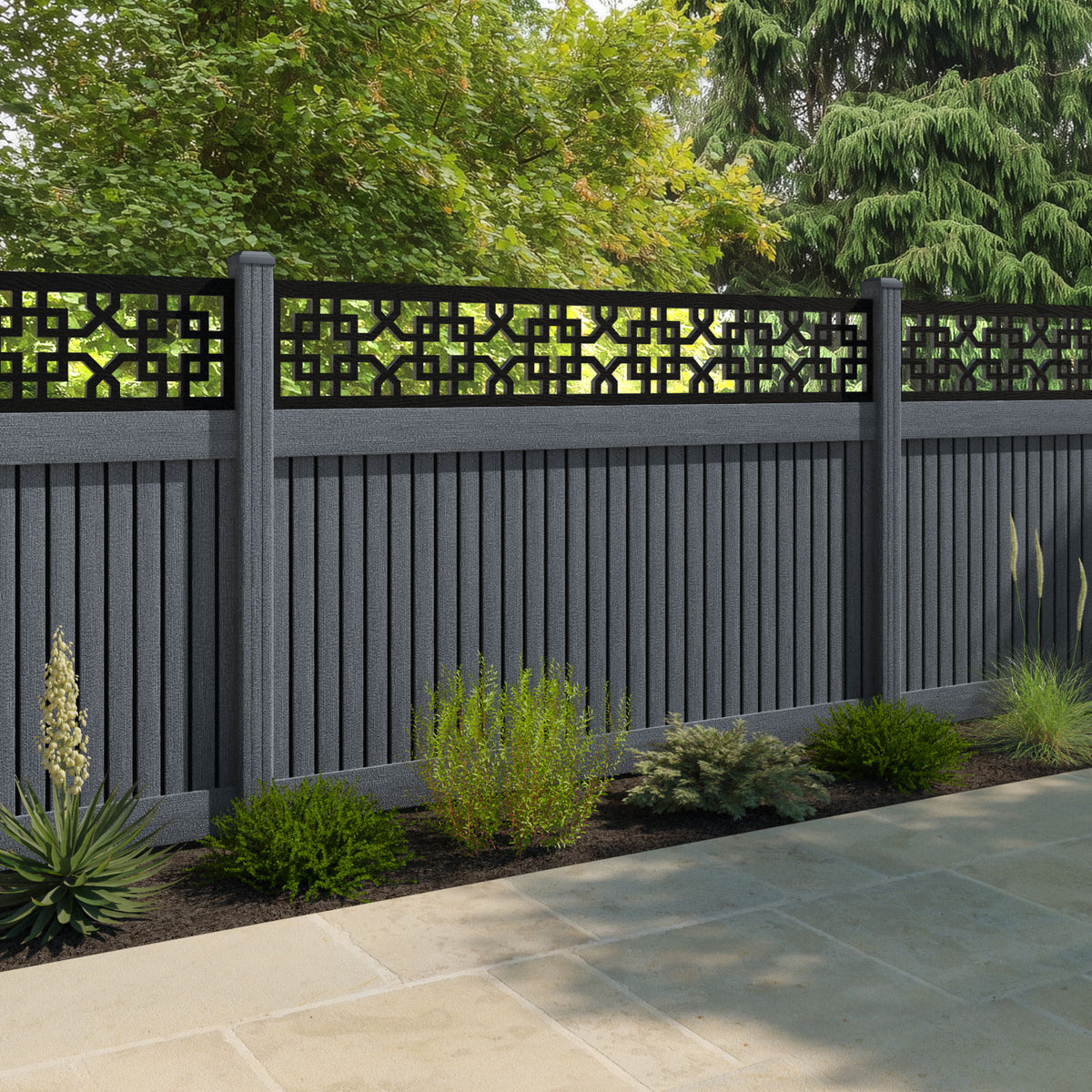 Virtis Zaria Fence Panel Anthracite - with our composite posts