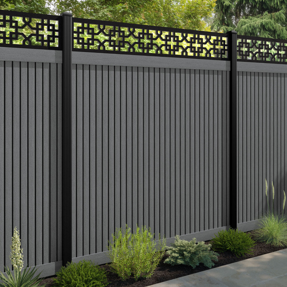 Virtis Zaria Fence Panel Mid Grey - with our aluminium posts