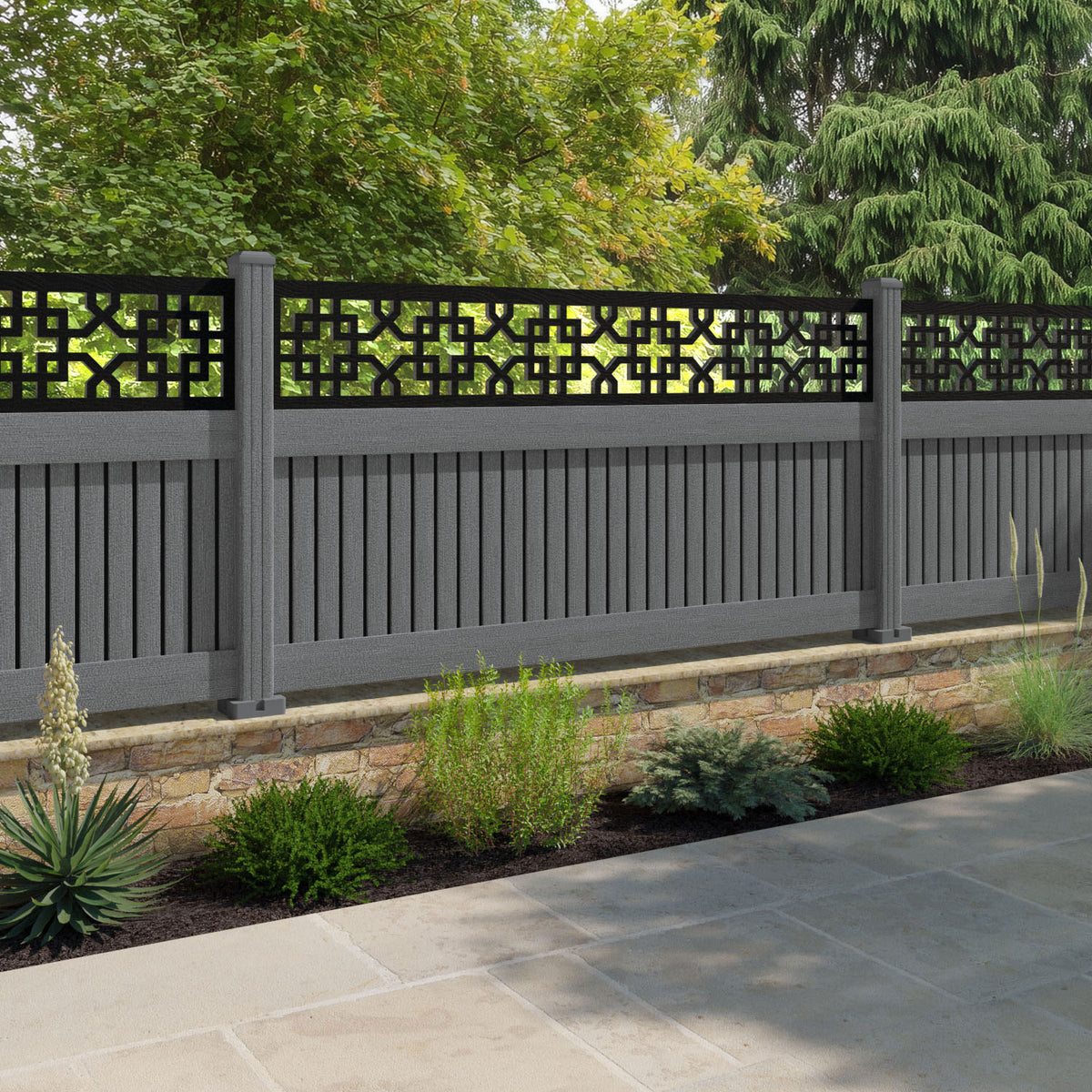 Virtis Zaria Fence Panel Mid Grey - with our composite posts
