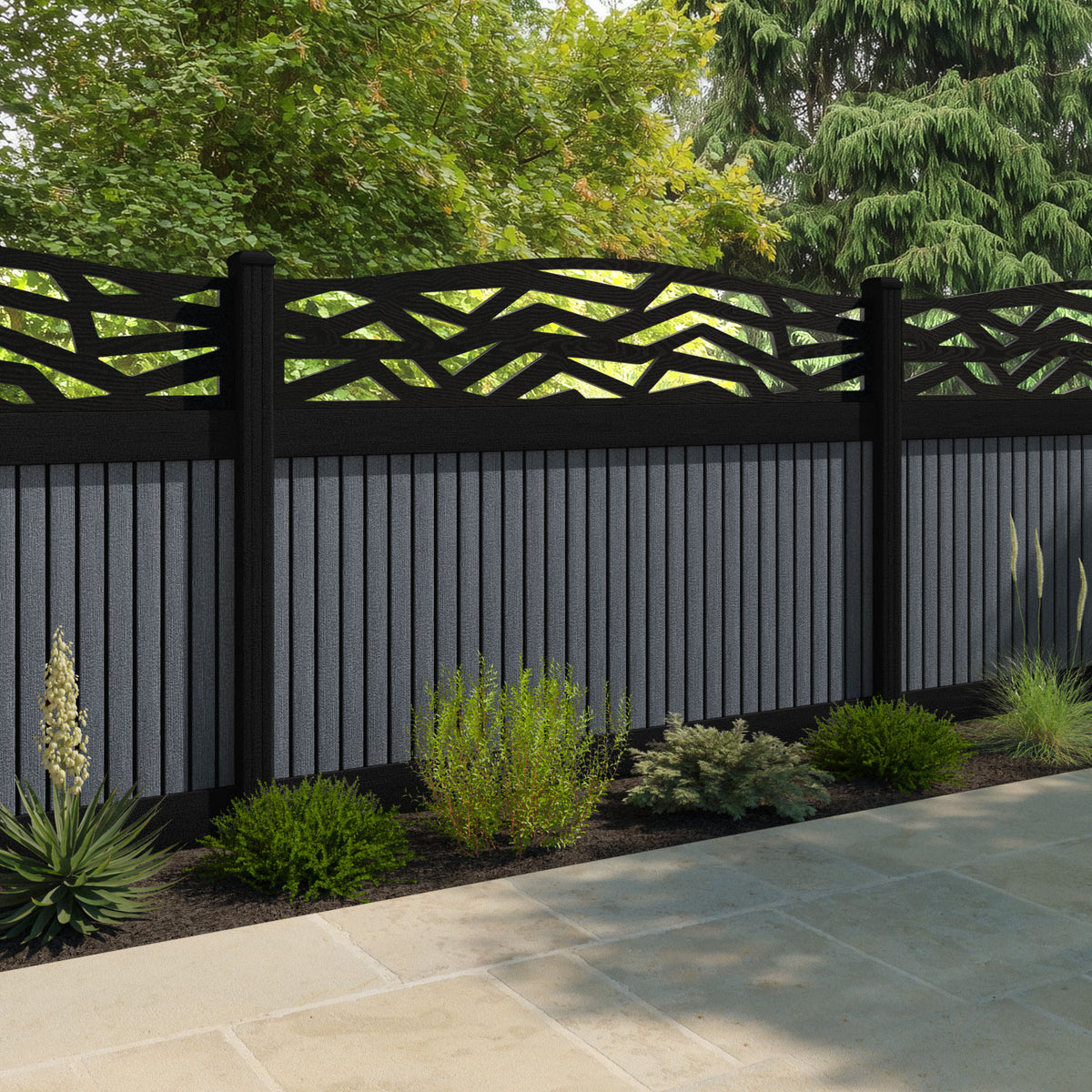 Virtis Zenith Curved Top Fence Panel Anthracite - with our composite posts