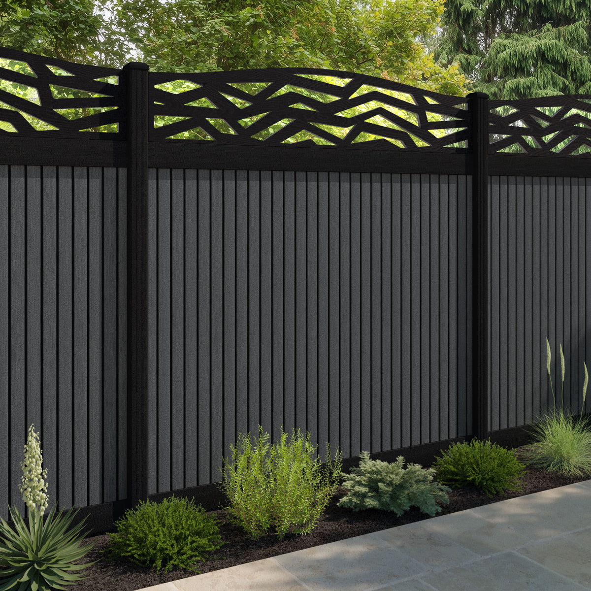 Virtis Zenith Curved Top Fence Panel Dark Grey - with our aluminium posts