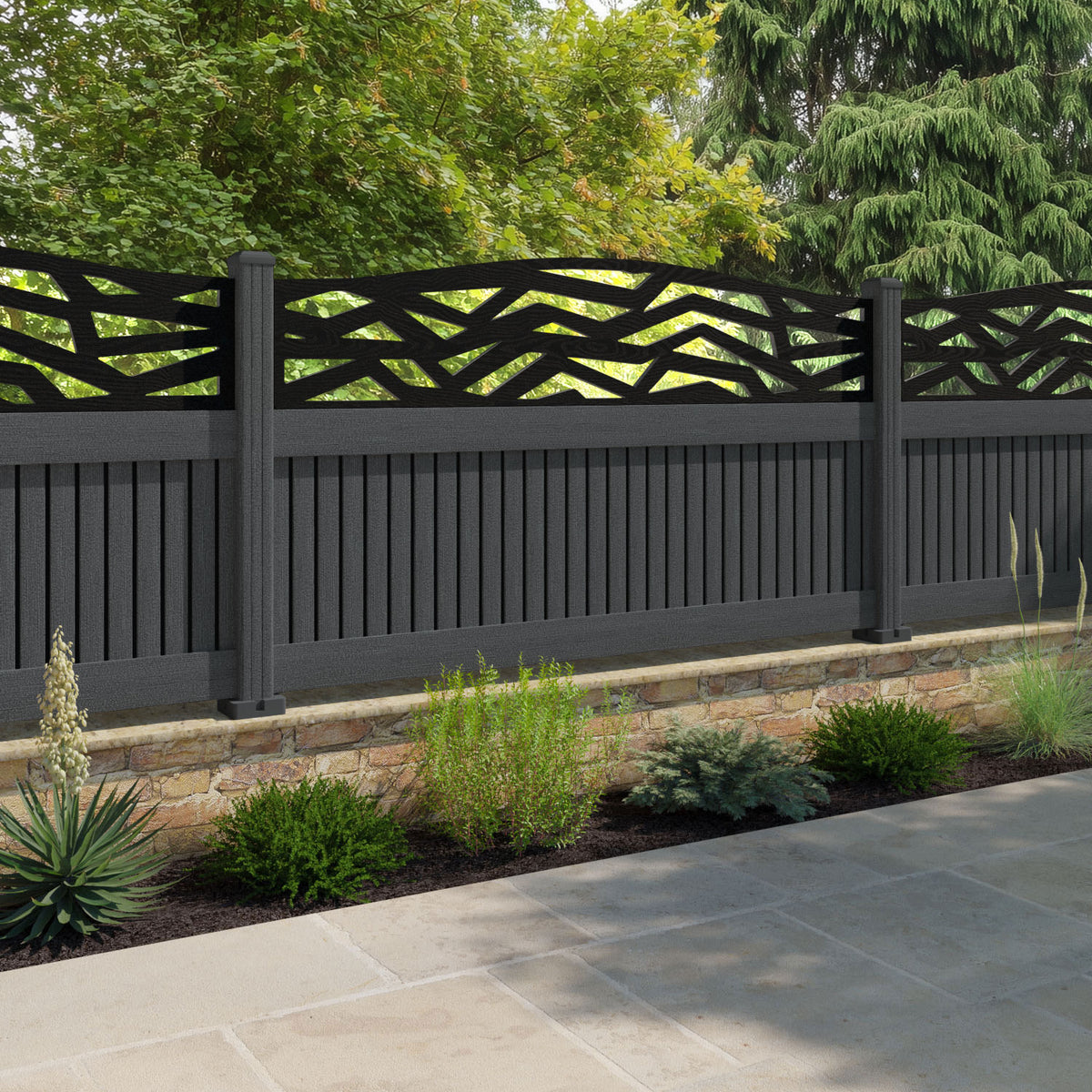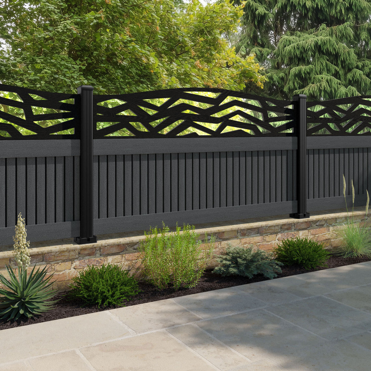 Virtis Zenith Curved Top Fence Panel Dark Grey - with our composite posts