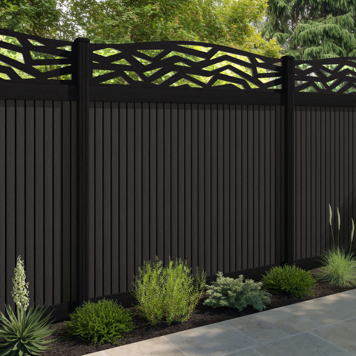 Virtis Zenith Curved Top Fence Panel Dark Oak - with our composite posts