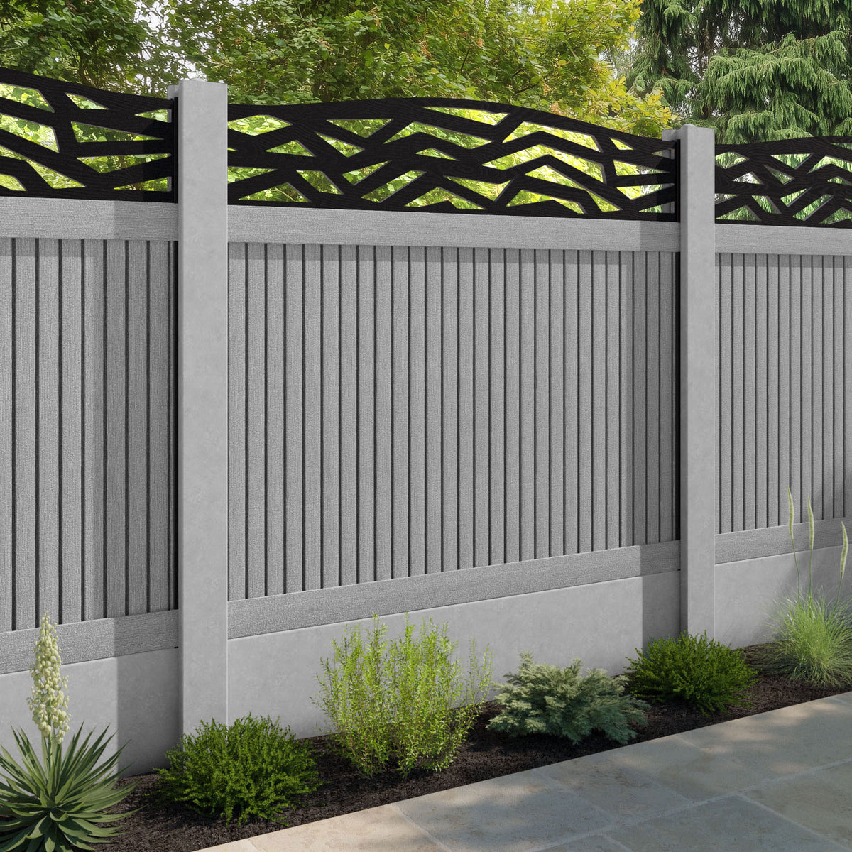 Virtis Zenith Curved Top Fence Panel Light Grey - for existing concrete posts