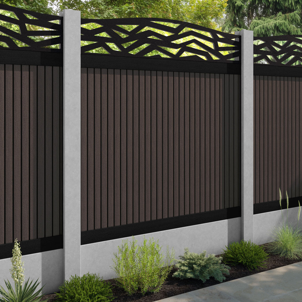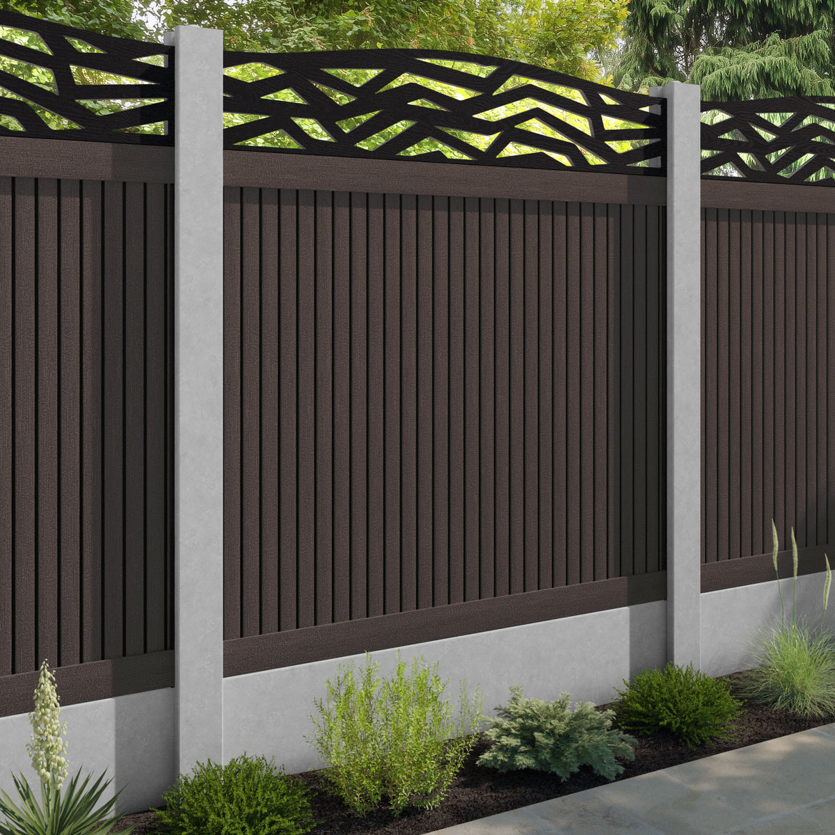 Virtis Zenith Curved Top Fence Panel Mid Brown - for existing concrete posts