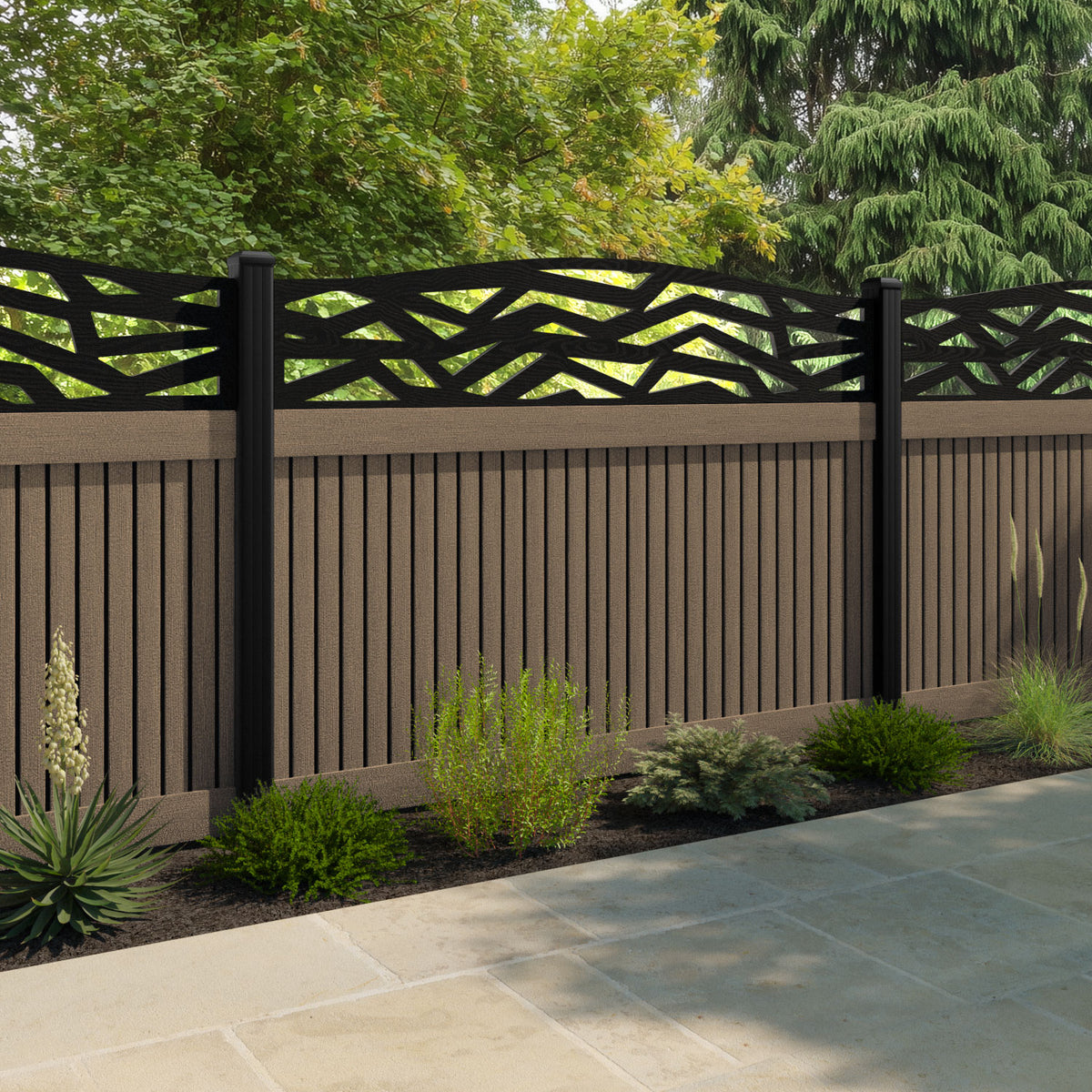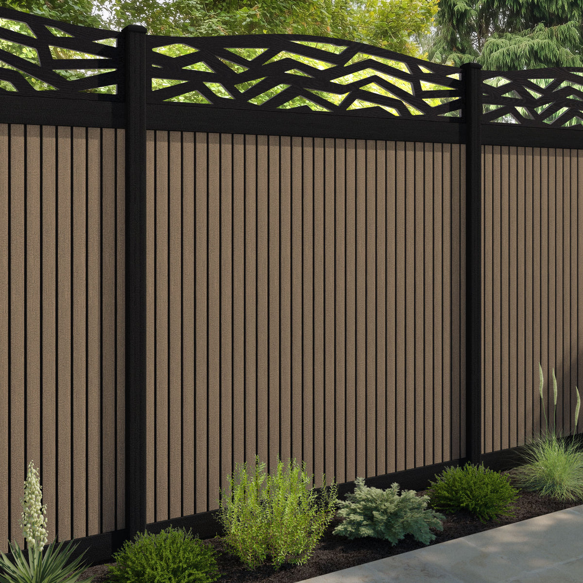 Virtis Zenith Curved Top Fence Panel Teak - with our composite posts