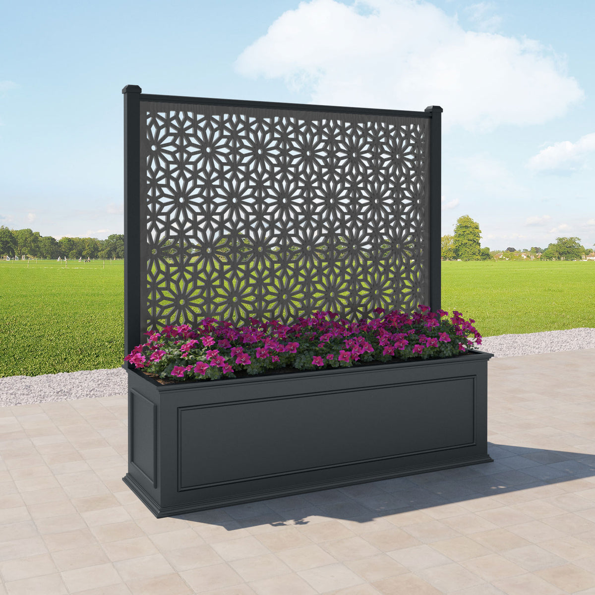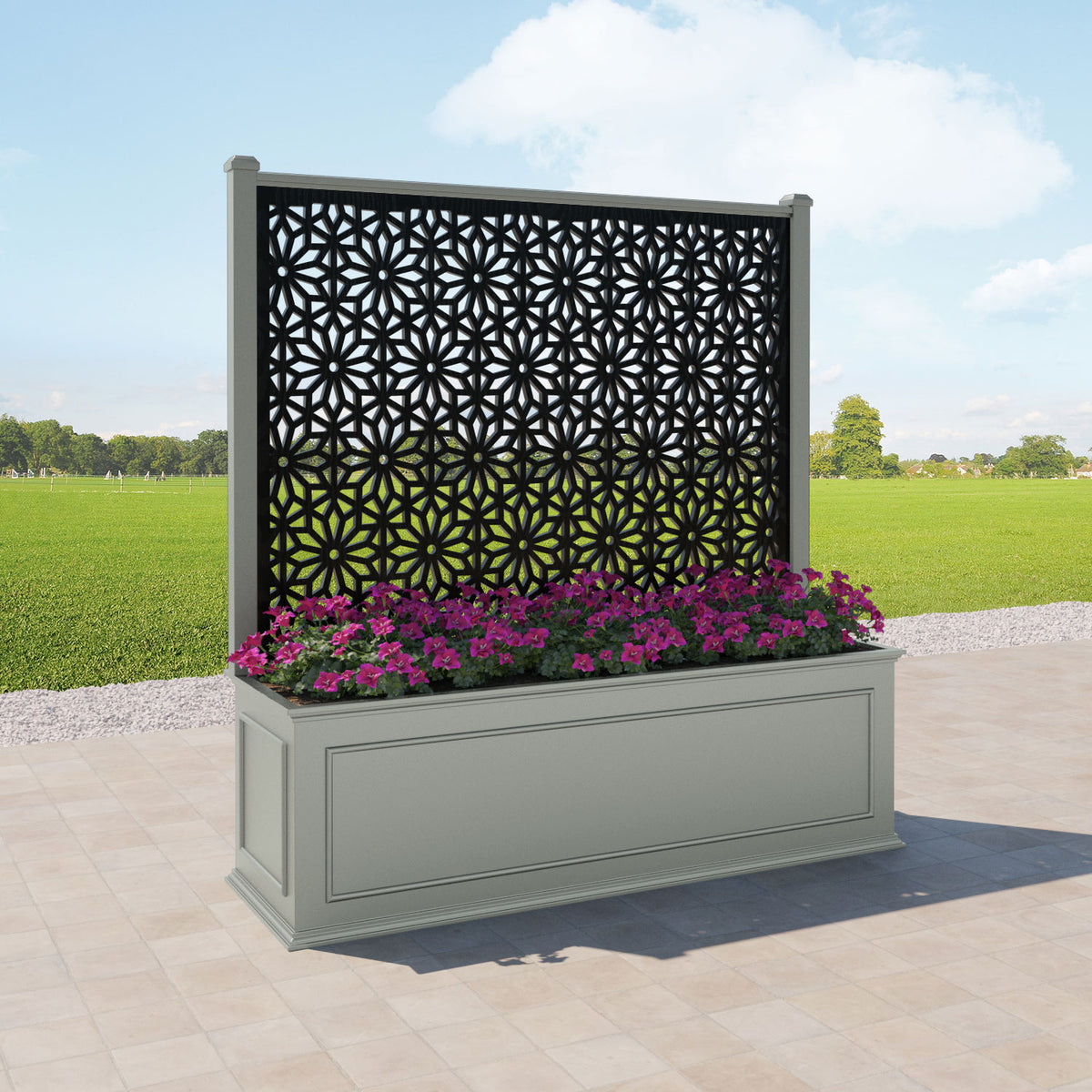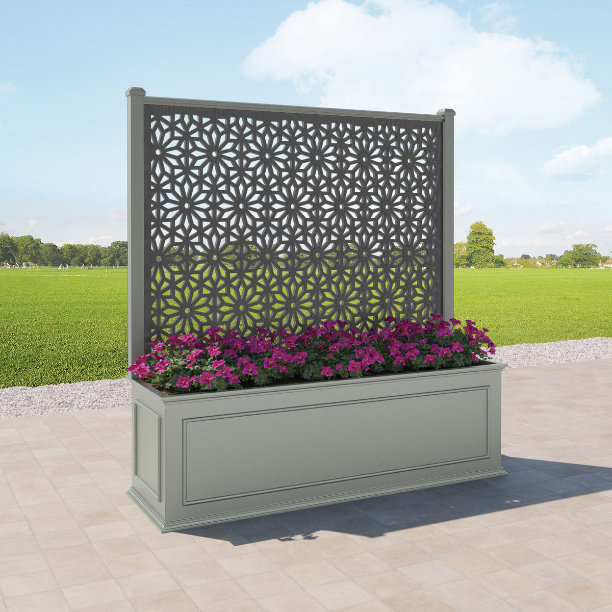 Incorporating our beautiful 18mm thick premium composite Windsor screens into our polystone trough and marine-grade aluminium planter frame to provide a practical all-weather planting and elegant partition solution.