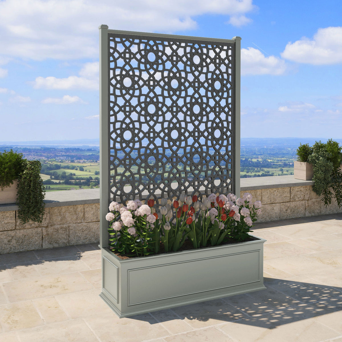The planters are available in 6 different sizes and can be paired with any of our decorative screens that are available in 5 different colour options. The screens can be fixed at the back or in the centre of the planter. The centre option enables you to plant on both sides of the screen. They can also be ordered with a wheeled base for convenience, with lockable wheels for stability.
