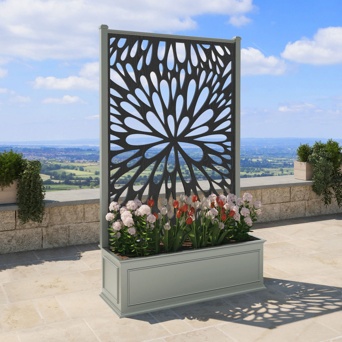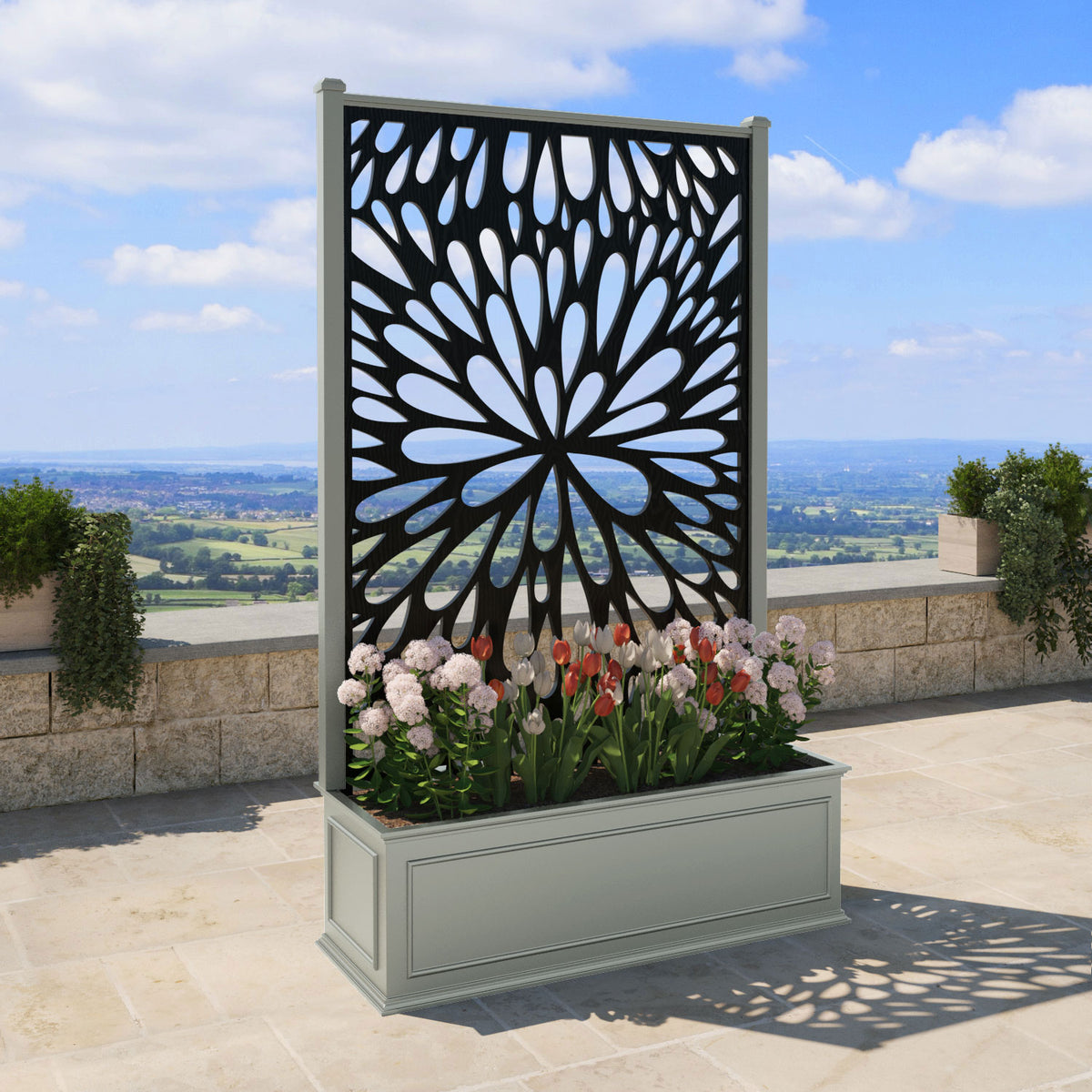 The planters are available in 6 different sizes and can be paired with any of our decorative screens that are available in 5 different colour options. The screens can be fixed at the back or in the centre of the planter. The centre option enables you to plant on both sides of the screen. They can also be ordered with a wheeled base for convenience, with lockable wheels for stability.