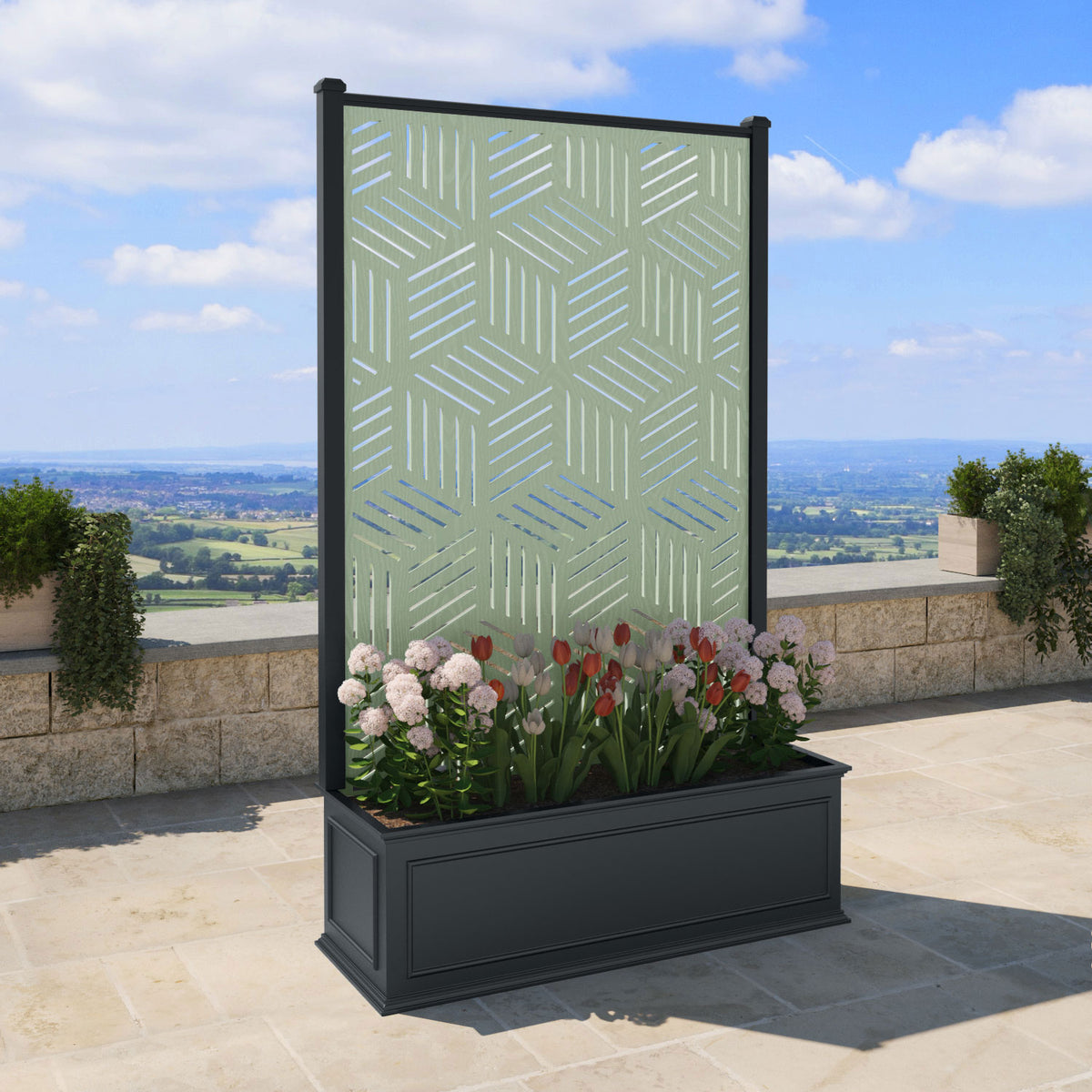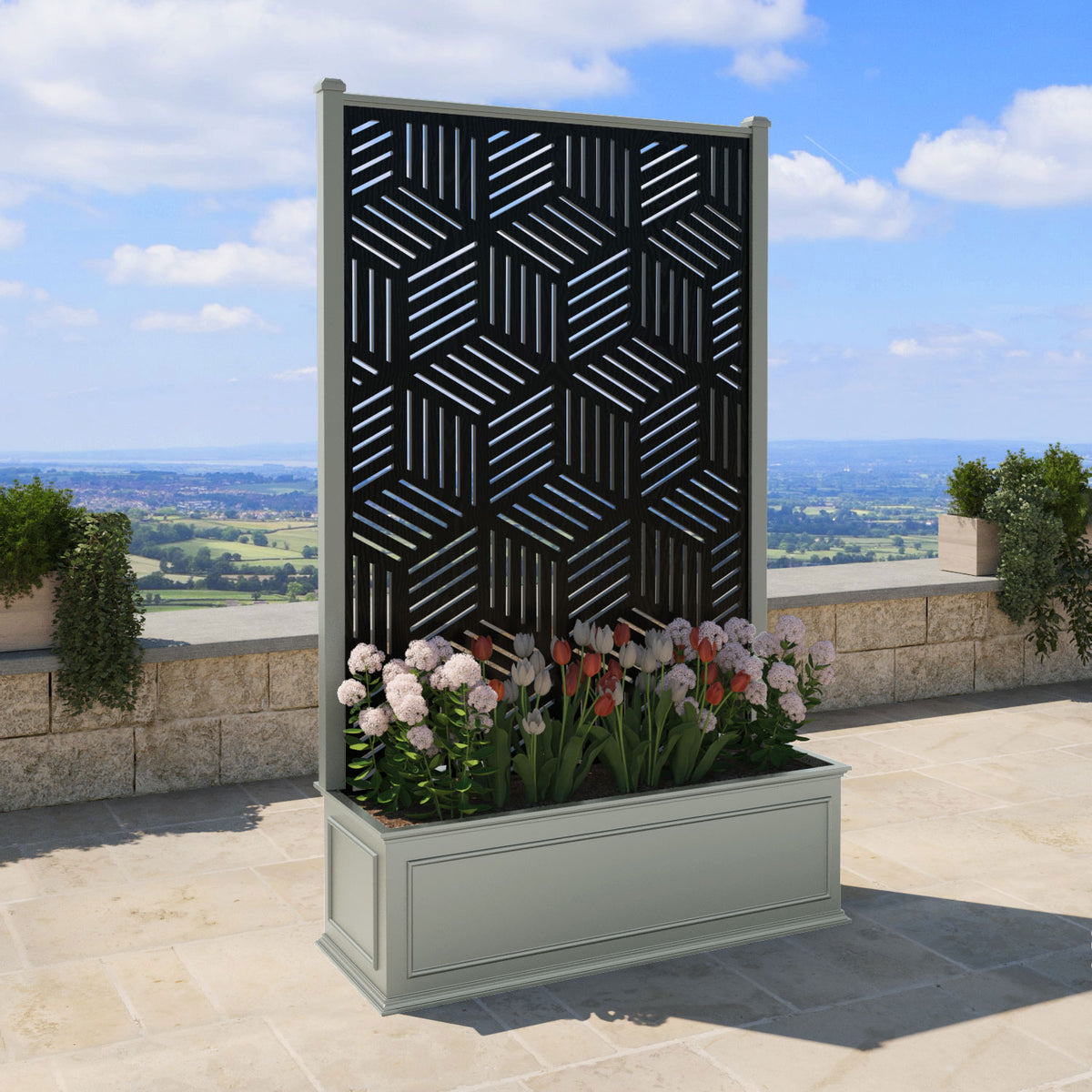 The planters are available in 6 different sizes and can be paired with any of our decorative screens that are available in 5 different colour options. The screens can be fixed at the back or in the centre of the planter. The centre option enables you to plant on both sides of the screen. They can also be ordered with a wheeled base for convenience, with lockable wheels for stability.