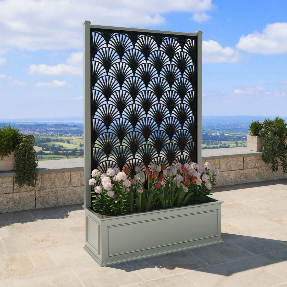 The planters are available in 6 different sizes and can be paired with any of our decorative screens that are available in 5 different colour options. The screens can be fixed at the back or in the centre of the planter. The centre option enables you to plant on both sides of the screen. They can also be ordered with a wheeled base for convenience, with lockable wheels for stability.