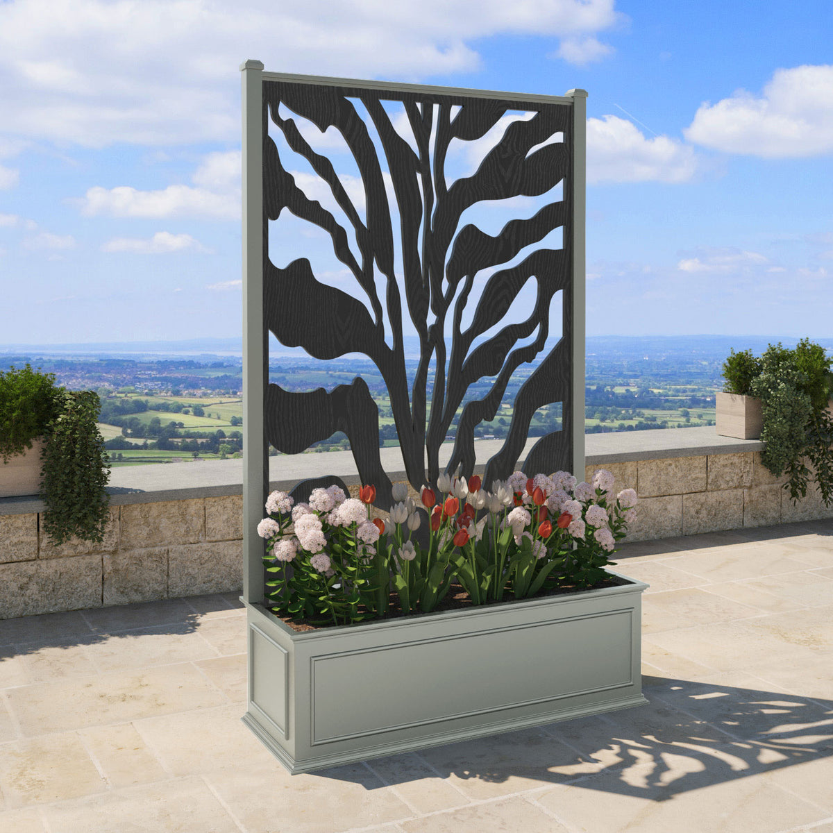 The planters are available in 6 different sizes and can be paired with any of our decorative screens that are available in 5 different colour options. The screens can be fixed at the back or in the centre of the planter. The centre option enables you to plant on both sides of the screen. They can also be ordered with a wheeled base for convenience, with lockable wheels for stability.