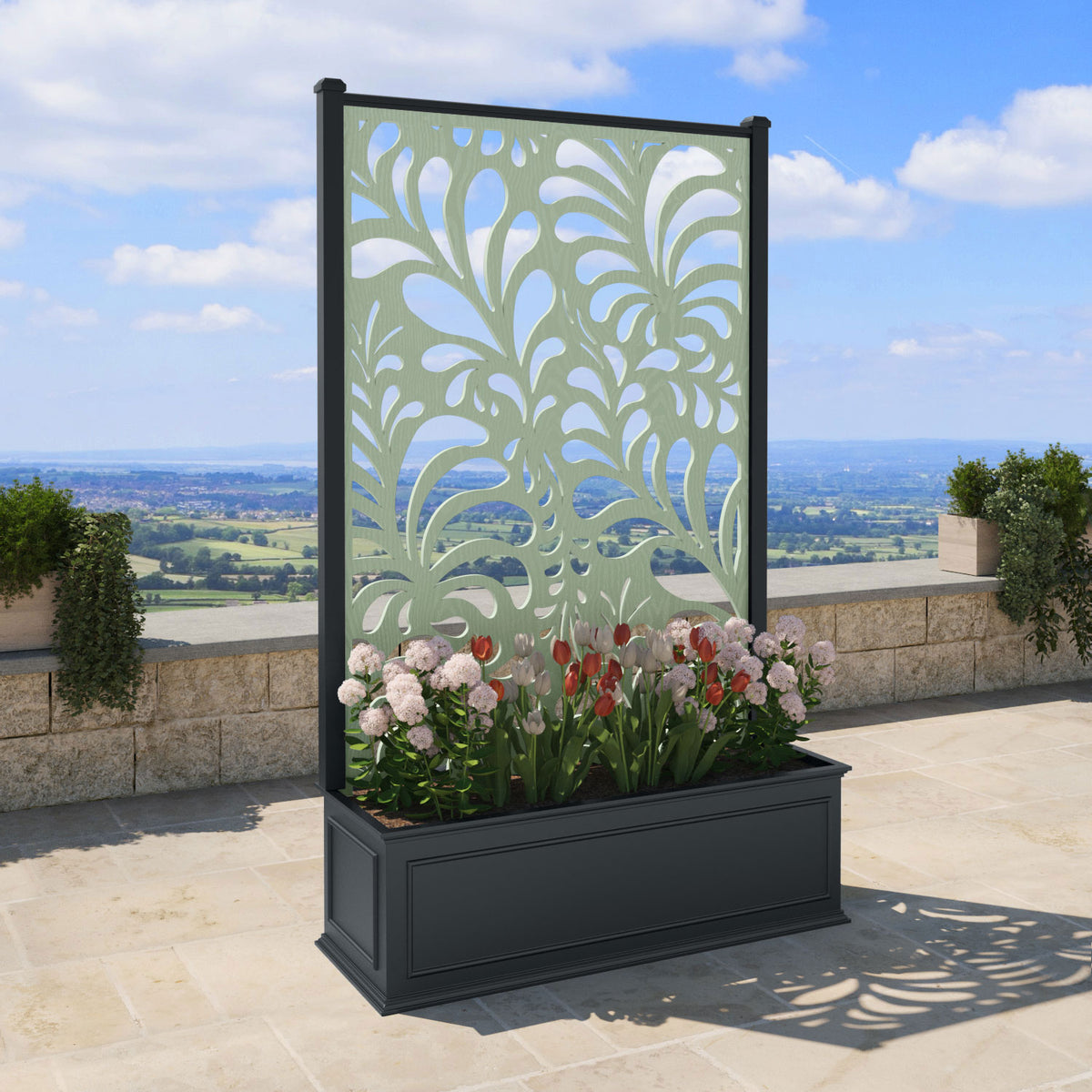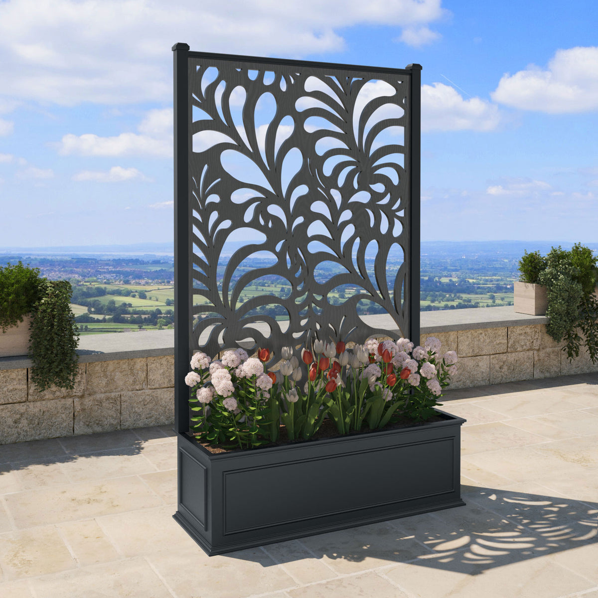 The planters are available in 6 different sizes and can be paired with any of our decorative screens that are available in 5 different colour options. The screens can be fixed at the back or in the centre of the planter. The centre option enables you to plant on both sides of the screen. They can also be ordered with a wheeled base for convenience, with lockable wheels for stability.