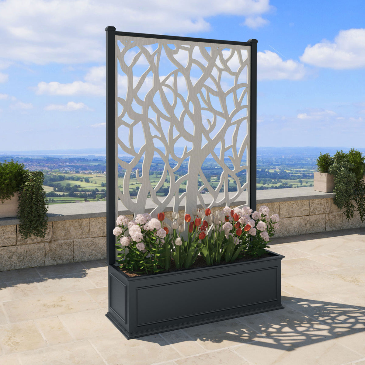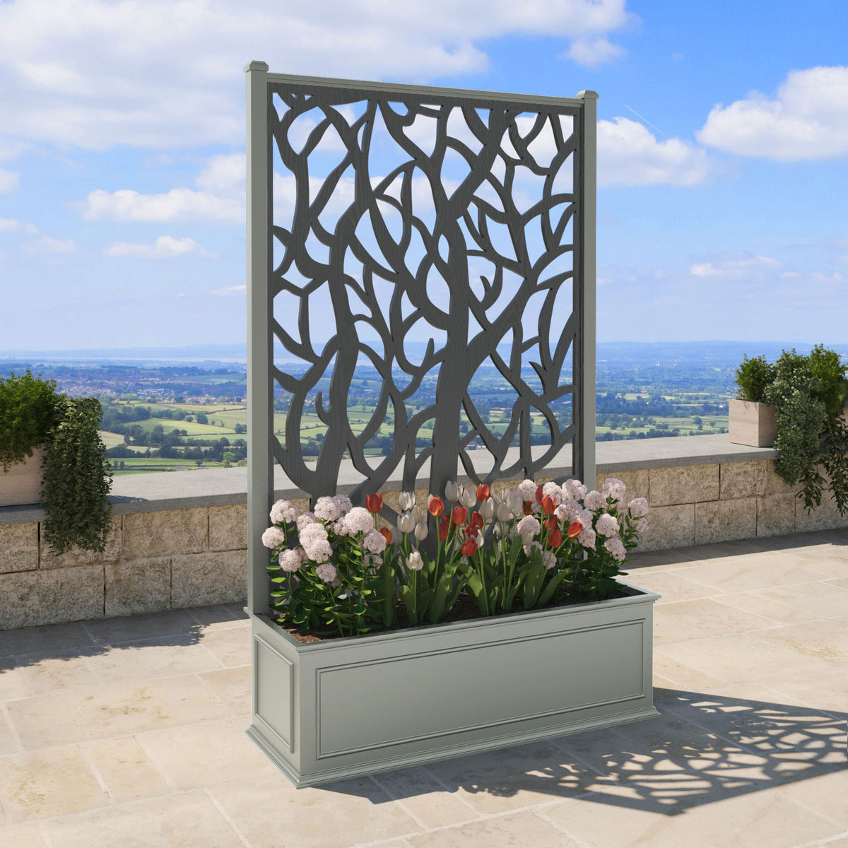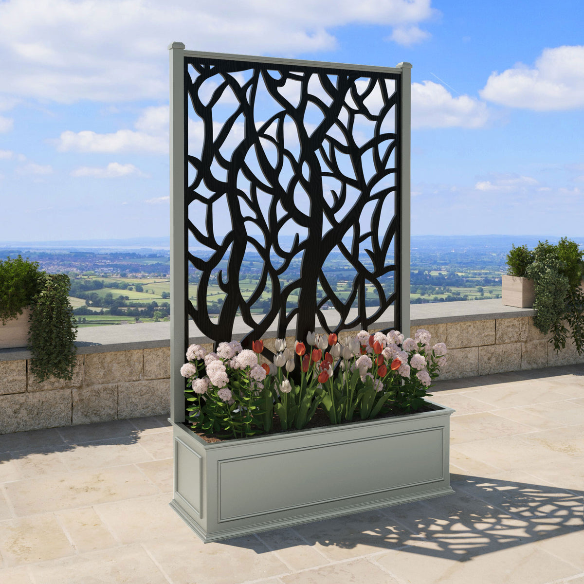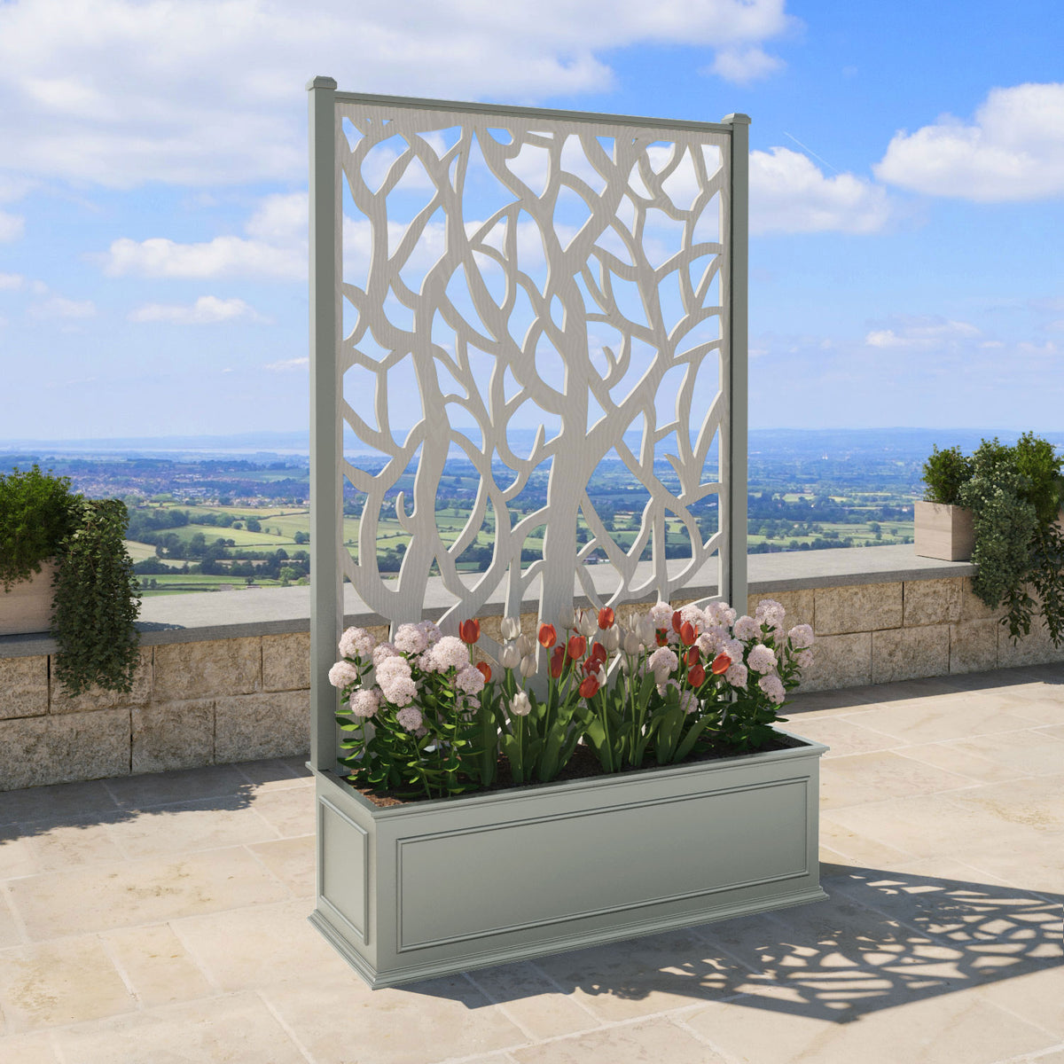 The planters are available in 6 different sizes and can be paired with any of our decorative screens that are available in 5 different colour options. The screens can be fixed at the back or in the centre of the planter. The centre option enables you to plant on both sides of the screen. They can also be ordered with a wheeled base for convenience, with lockable wheels for stability.