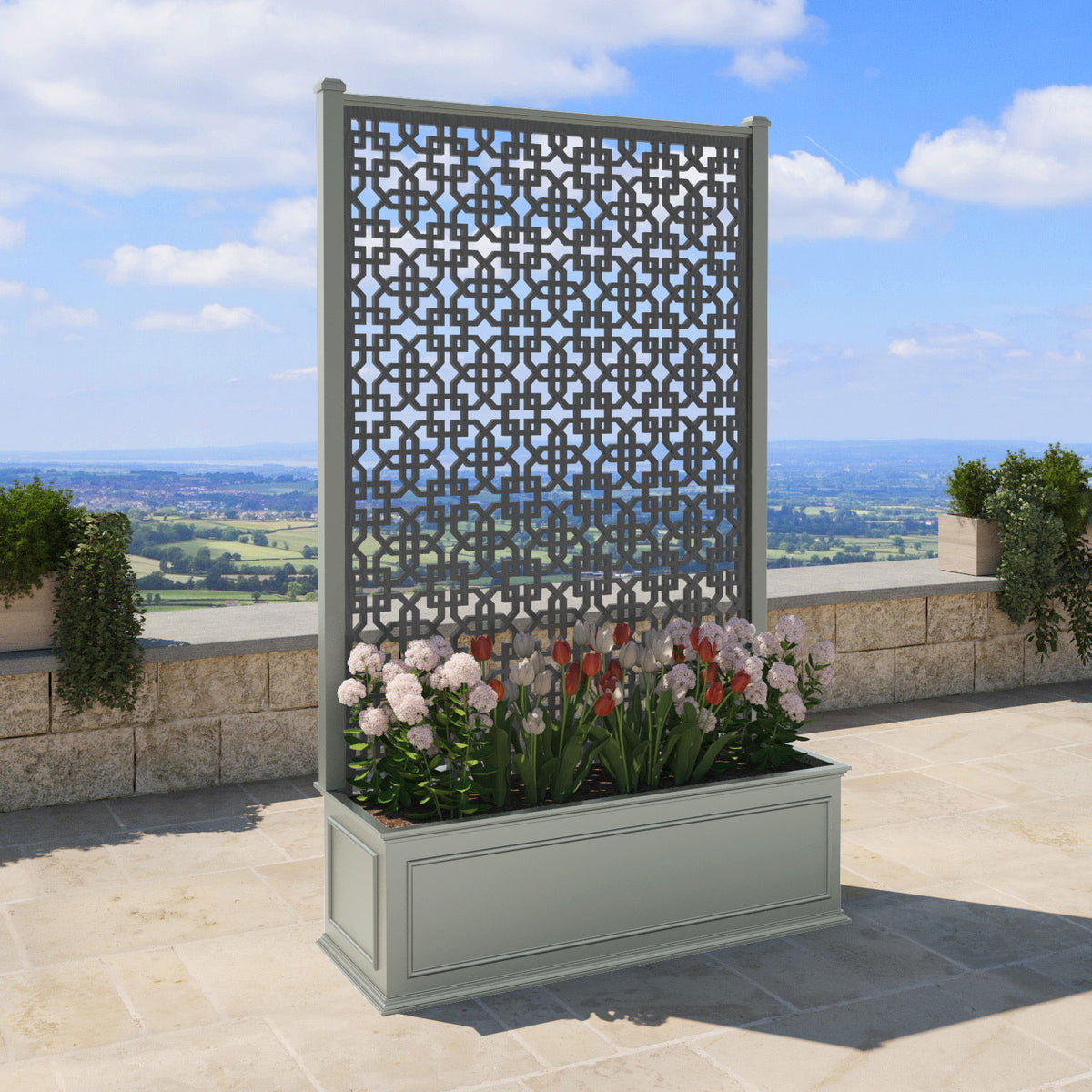 The planters are available in 6 different sizes and can be paired with any of our decorative screens that are available in 5 different colour options. The screens can be fixed at the back or in the centre of the planter. The centre option enables you to plant on both sides of the screen. They can also be ordered with a wheeled base for convenience, with lockable wheels for stability.