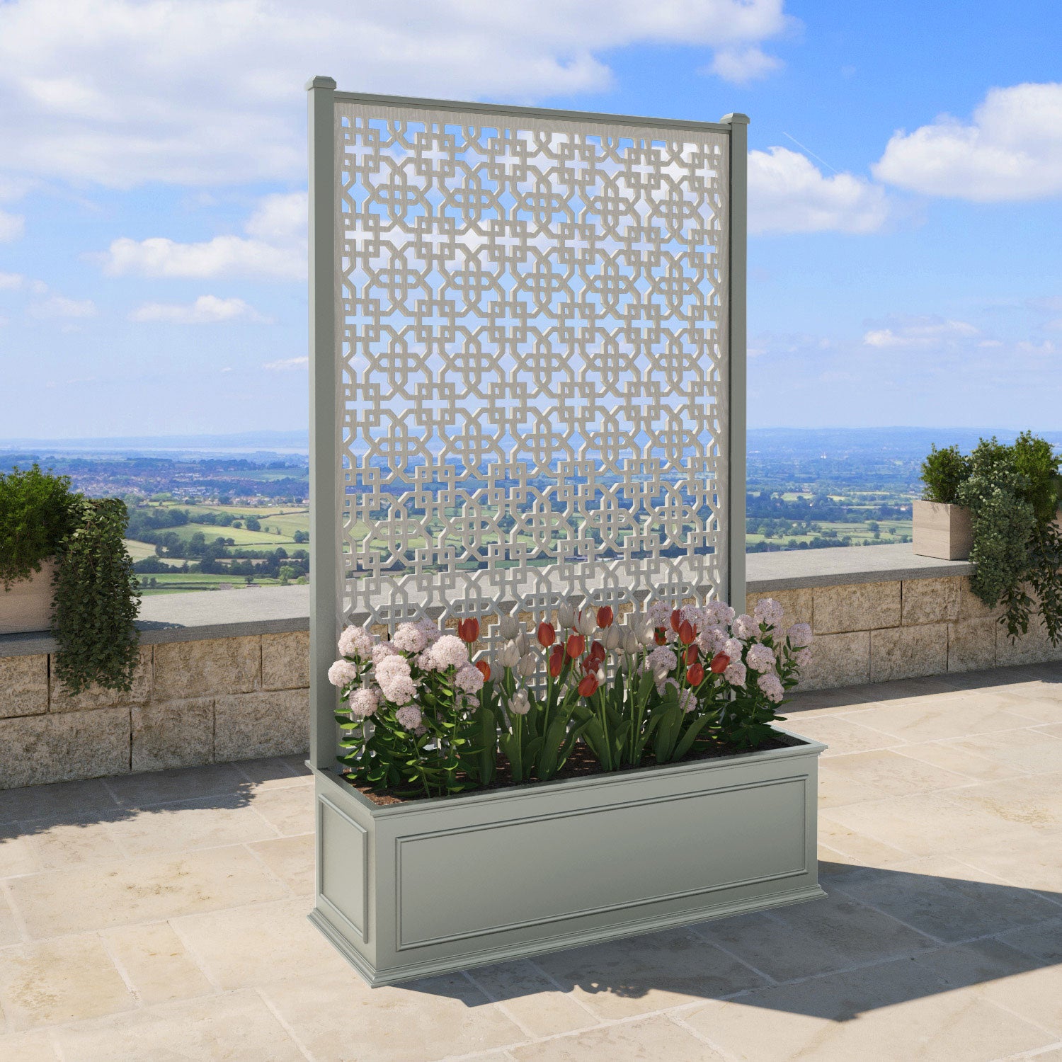 The planters are available in 6 different sizes and can be paired with any of our decorative screens that are available in 5 different colour options. The screens can be fixed at the back or in the centre of the planter. The centre option enables you to plant on both sides of the screen. They can also be ordered with a wheeled base for convenience, with lockable wheels for stability.