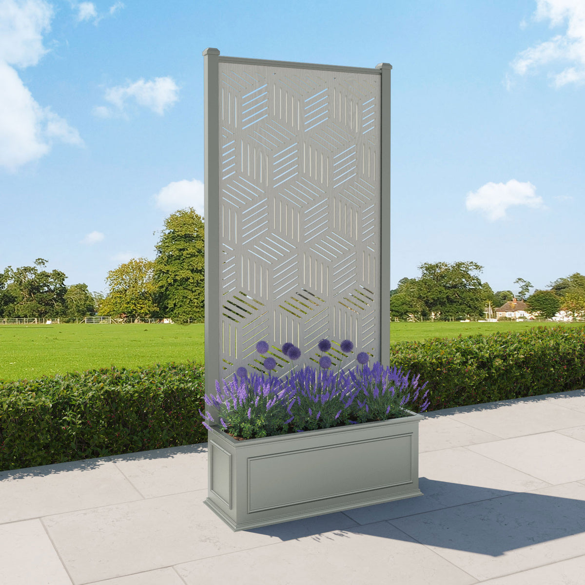 The planters are available in 6 different sizes and can be paired with any of our decorative screens that are available in 5 different colour options. The screens can be fixed at the back or in the centre of the planter. The centre option enables you to plant on both sides of the screen. They can also be ordered with a wheeled base for convenience, with lockable wheels for stability.