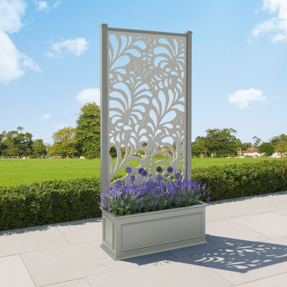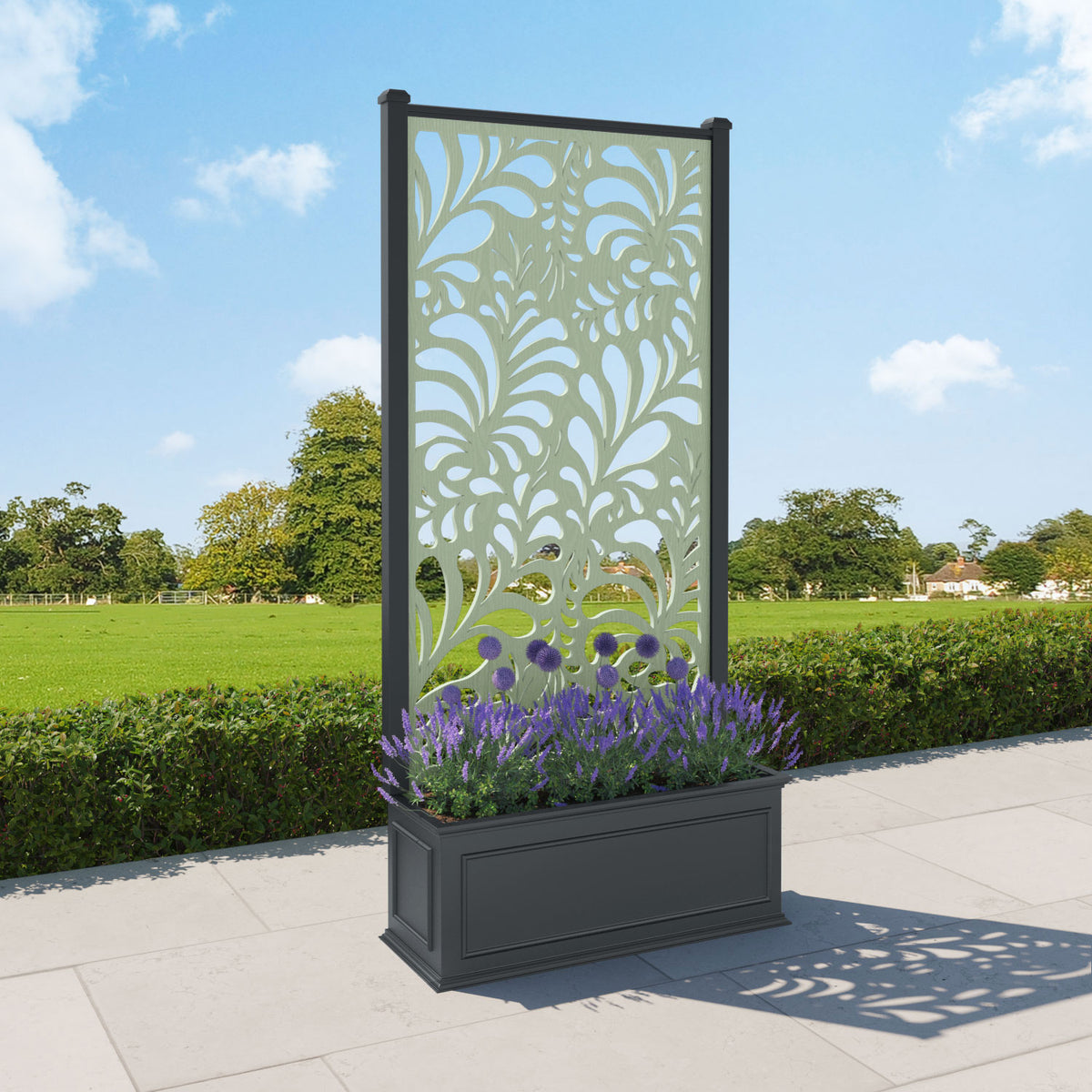 The planters are available in 6 different sizes and can be paired with any of our decorative screens that are available in 5 different colour options. The screens can be fixed at the back or in the centre of the planter. The centre option enables you to plant on both sides of the screen. They can also be ordered with a wheeled base for convenience, with lockable wheels for stability.