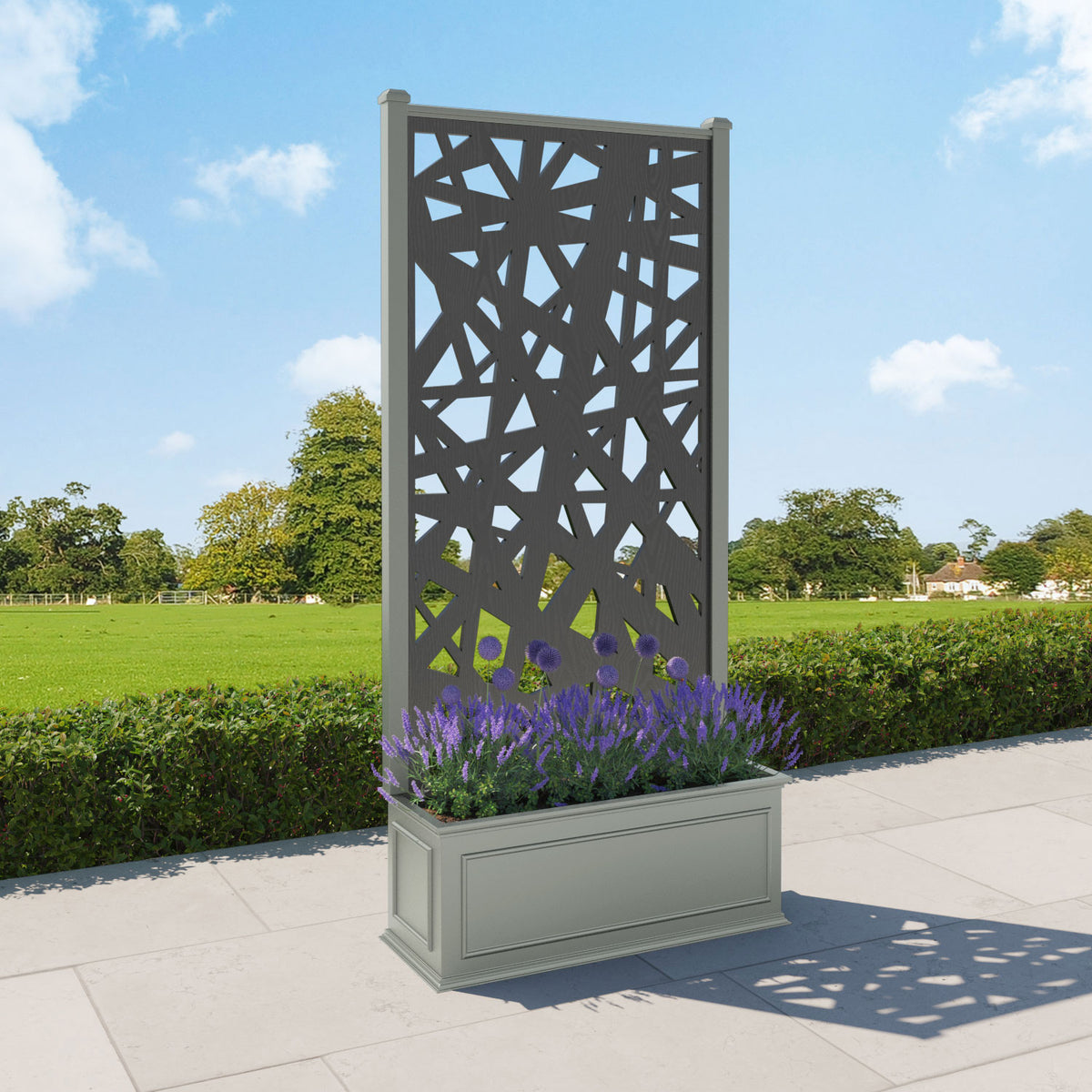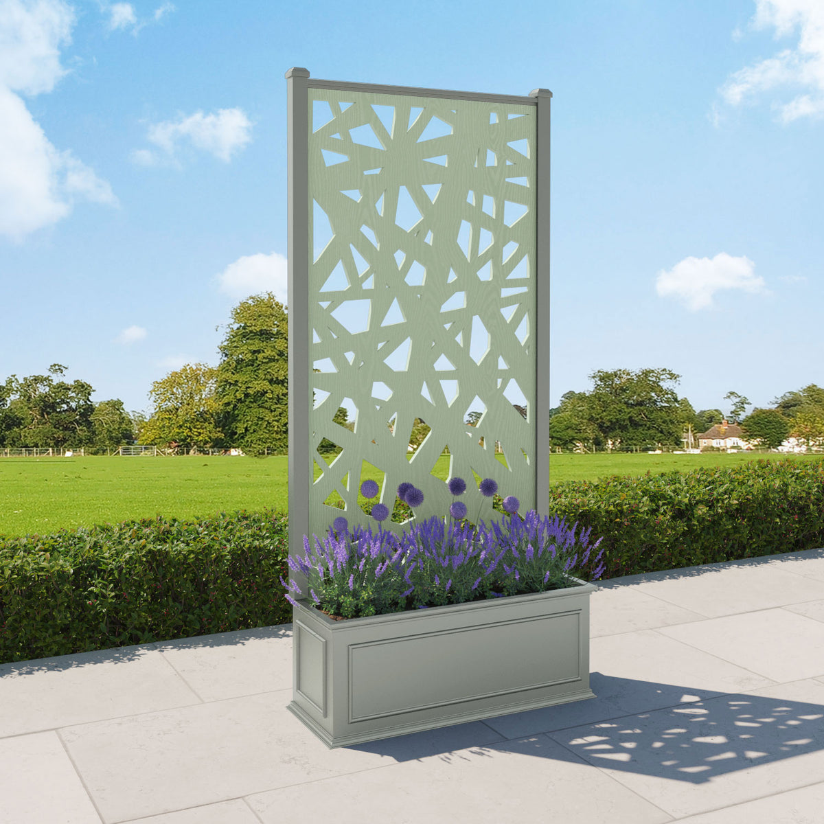 The planters are available in 6 different sizes and can be paired with any of our decorative screens that are available in 5 different colour options. The screens can be fixed at the back or in the centre of the planter. The centre option enables you to plant on both sides of the screen. They can also be ordered with a wheeled base for convenience, with lockable wheels for stability.