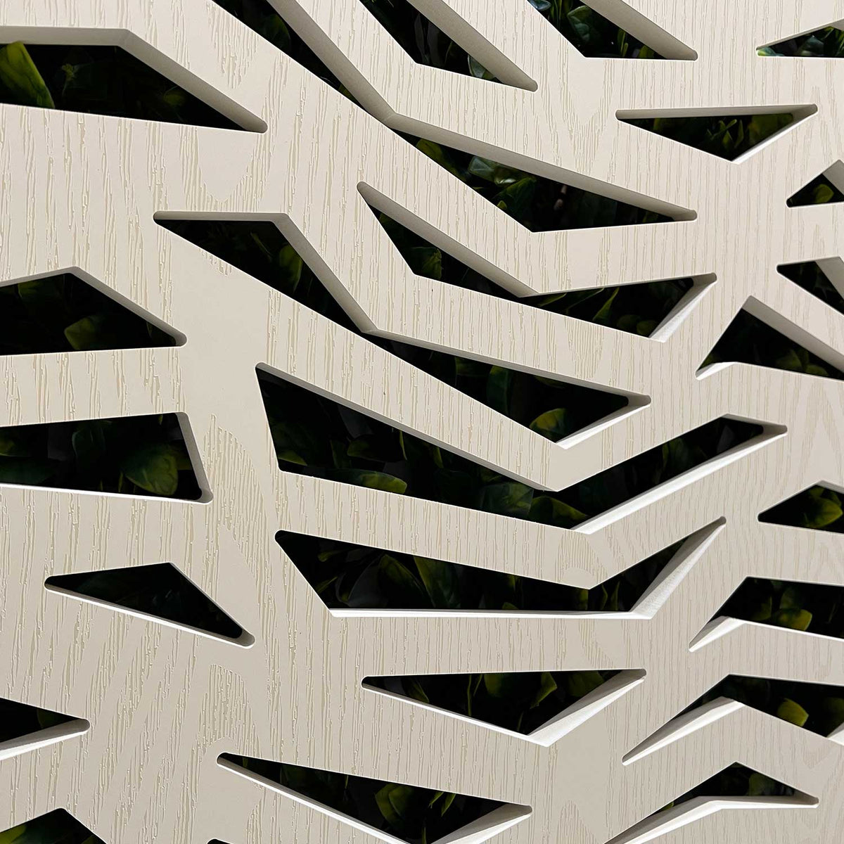 Inject energy and drama into your space with Zenith. Its jagged lines intersect to create a dramatic, abstract pattern that makes a strong, stylish statement alongside contemporary decor. The dense design makes Zenith a popular choice for those looking to create privacy or screen off certain areas.